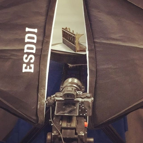 Over 80% of Tom was created using hand made models which were digitized using photogrammetry. It took 9 months to built over 100 models that were used to create the environments in the film. The photogrammetry process took a year to complete with a a quarter of a million photographs being used to reconstruct the models digitally.